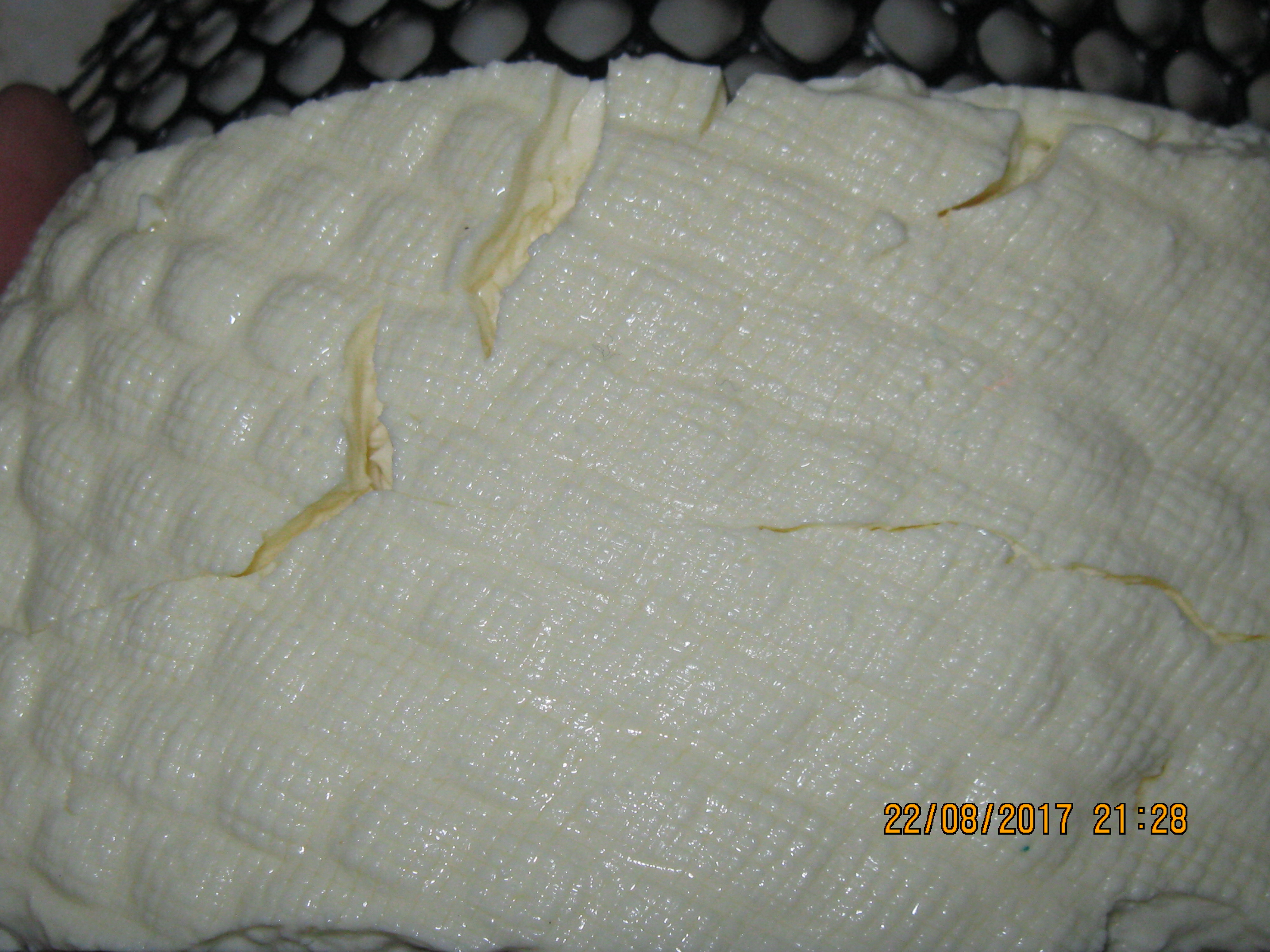 Здравствуйте. Делала брынзу уже не первый раз (шестой), и получилась какая-то слабая головка: с одной стороны в трещинах, которые то смыкаются, то расходятся. Если это порок сыра, то в чем причина. Пришлось сырную массу разделить на 2 части т.к. не вмещалась в одну форму. Так вот маленький сыр без трещин, а головка диаметром 17 см как порезанная. Вкус нормальный. Плохо спрессовала?