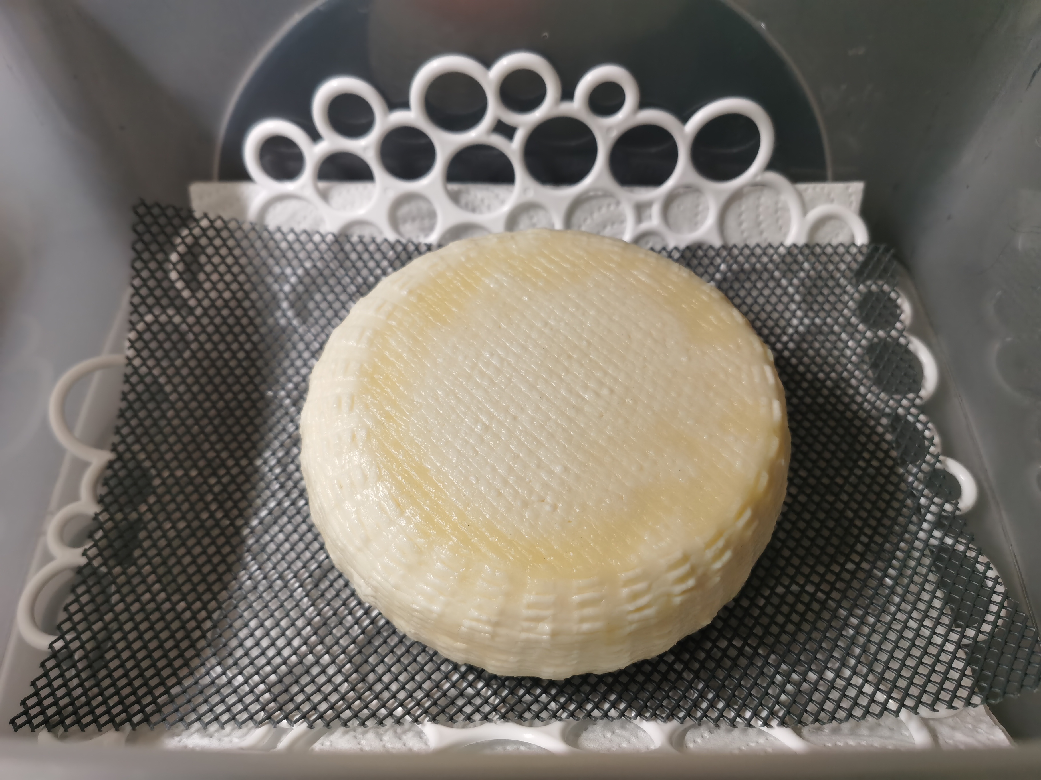 Решил приобщиться к сыроварению и начал с Качотты. Собственно вопрос, на созревании с понедельника, корочки как таковой нет, это нормально? Есть немного жёлтых пятен похожих на корочку. Созревание в контейнере, в холодильнике при температуре 8-10 градусов, сыр на ощупь влажный.