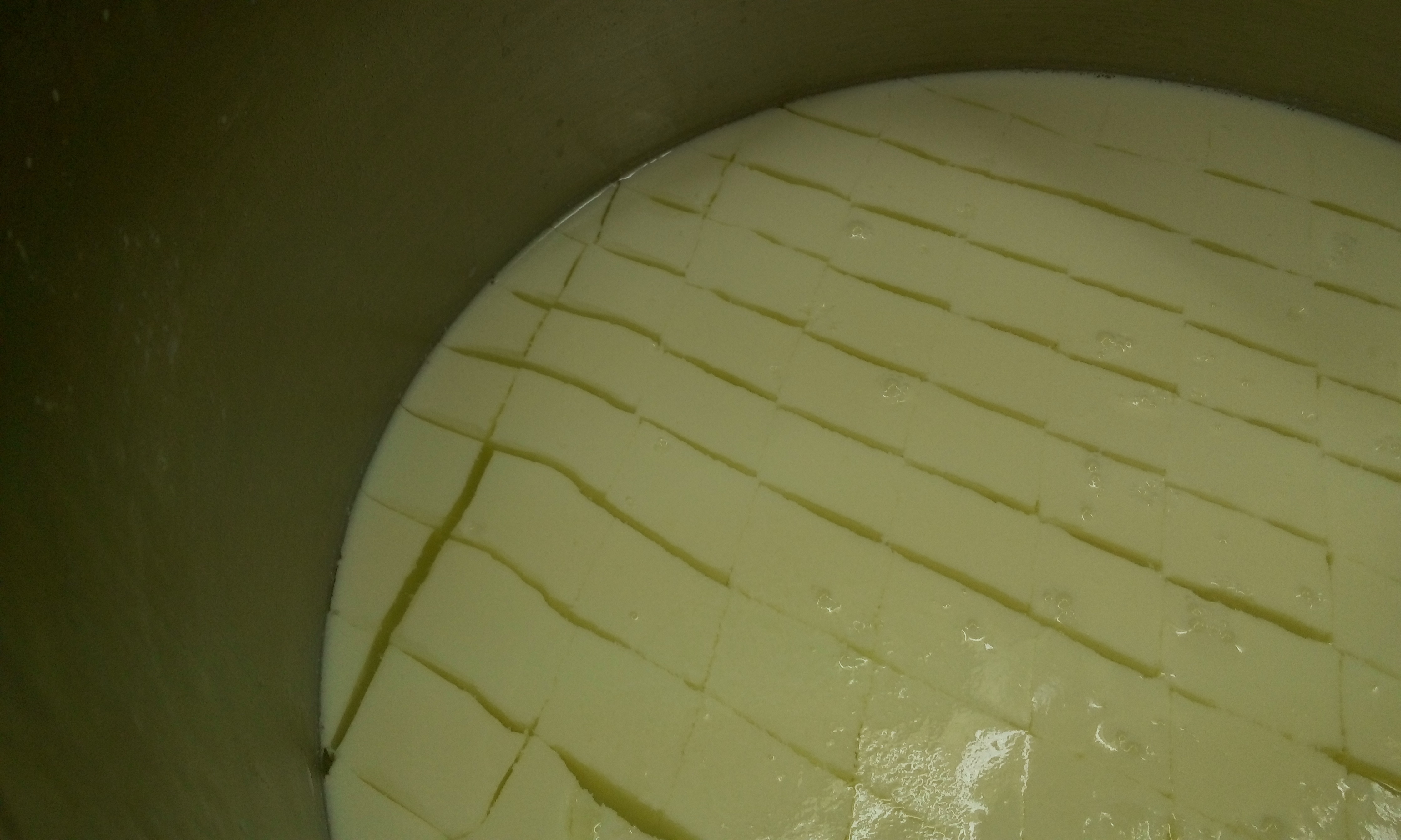 Всем спасибо за внимание. Ниже попробую приложить фото процесса производства (первая резка сгустка, вторая резка сгустка, сырное зерно после чеддеризации, и готовый продукт).