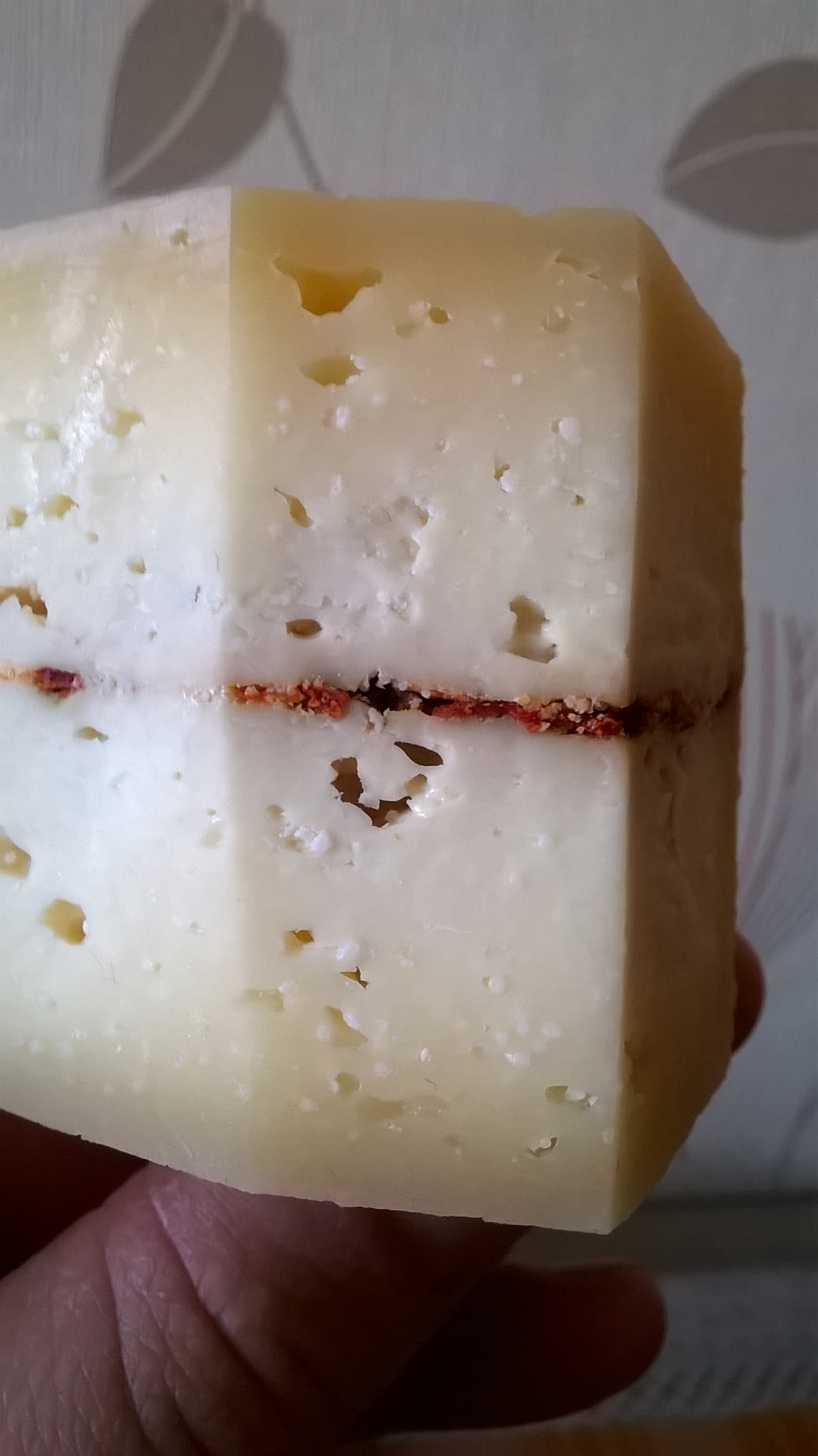 Остановился на варианте тёрочного сыра. Вкус выдержанный сырный, с небольшой елезаметной кислинкой . Особую нотку во вкусе вносят специи: Пажитник, паприка. Трётся и плавится хорошо. Особенно хорош в соусах, пастах.