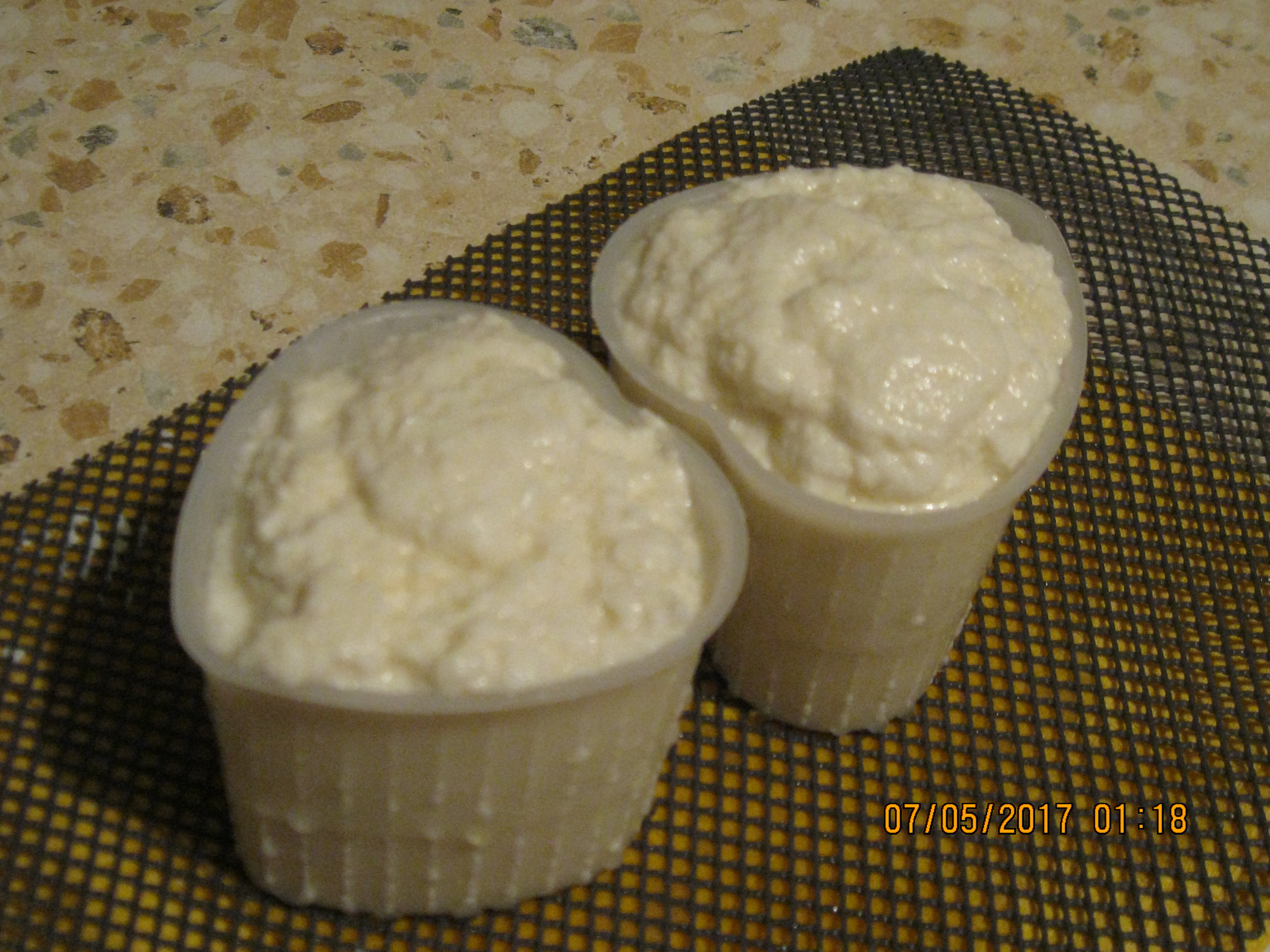 Снова делала сыр..., а из 2.5 литров сыворотки получилось два сердечка рикотты.. Оказывается, отверстия в стенках этих формочек так устроены, что через них не утекает сырная масса, а только сыворотка.