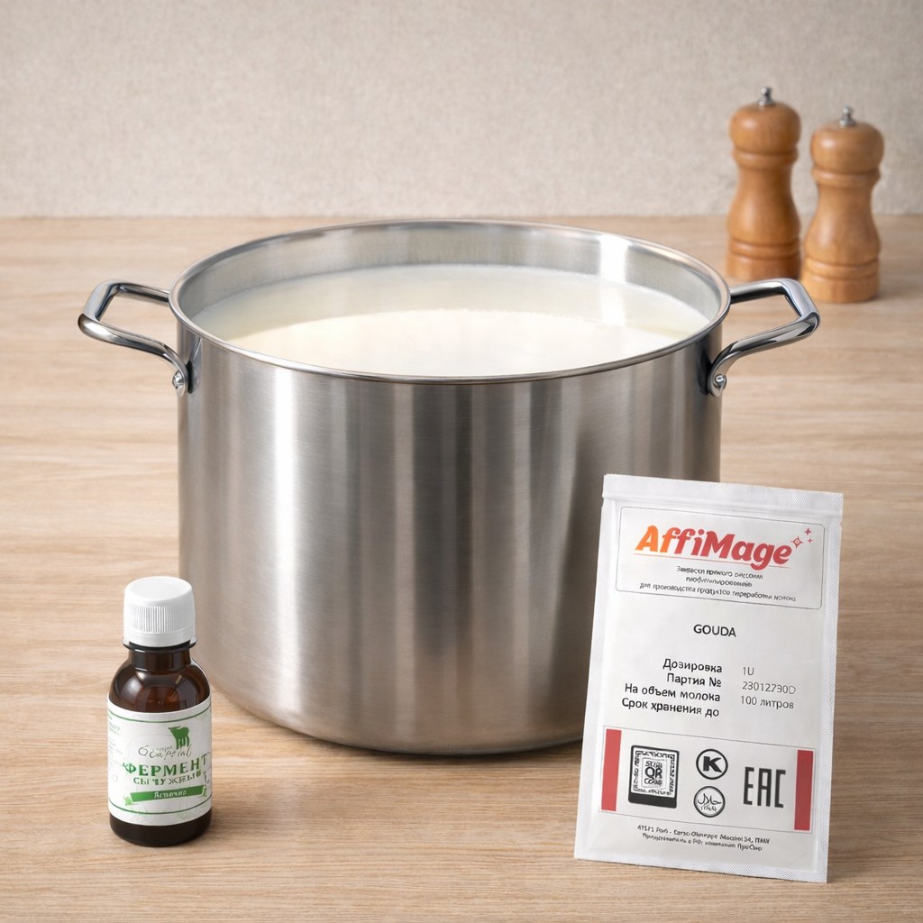 - Закваска ПроСыр “Для гауды” или Danisco CHOOZIT MM 101. Норму внесения рассчитайте с помощью калькулятора закваски.