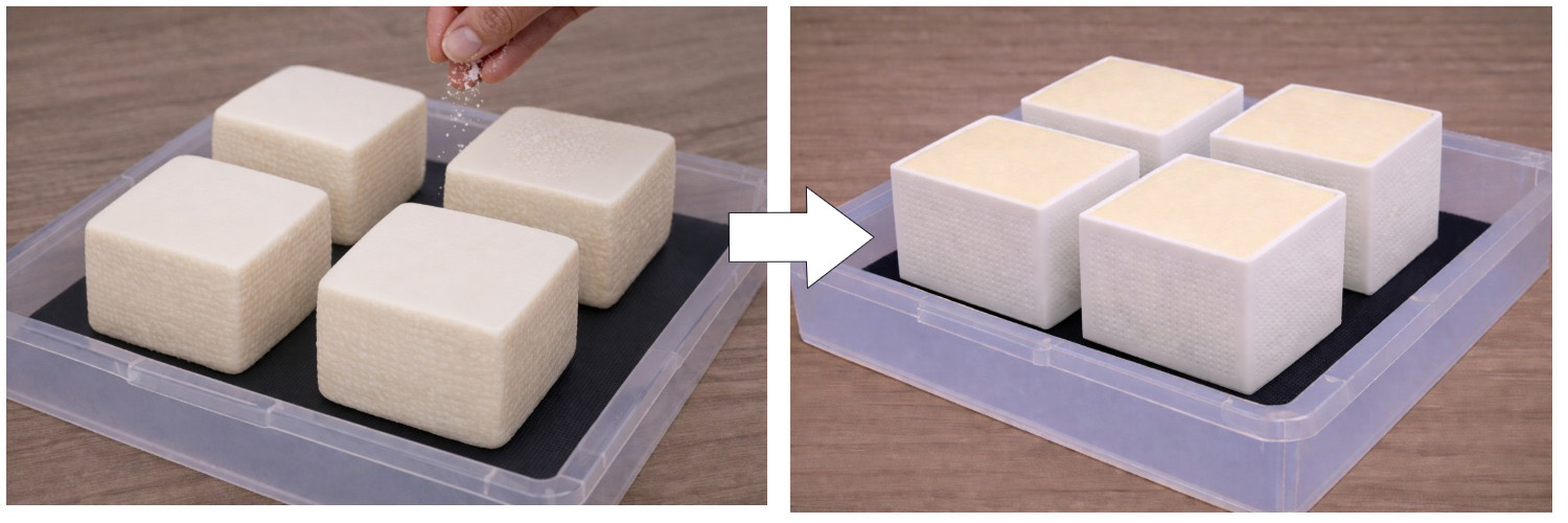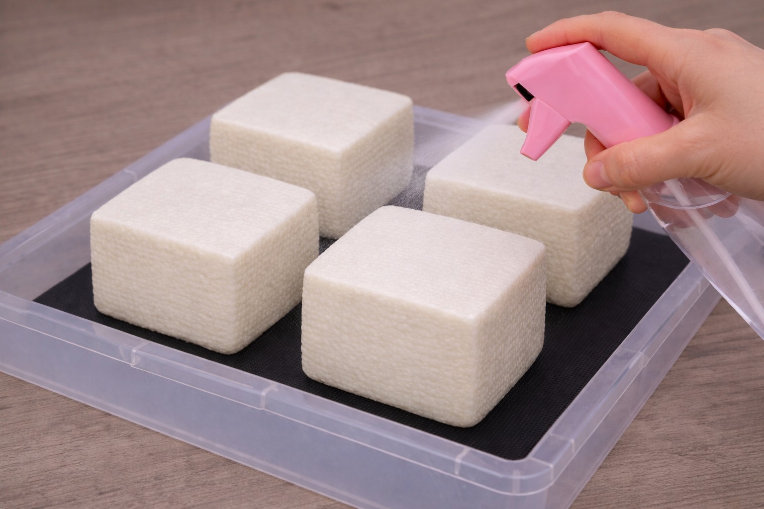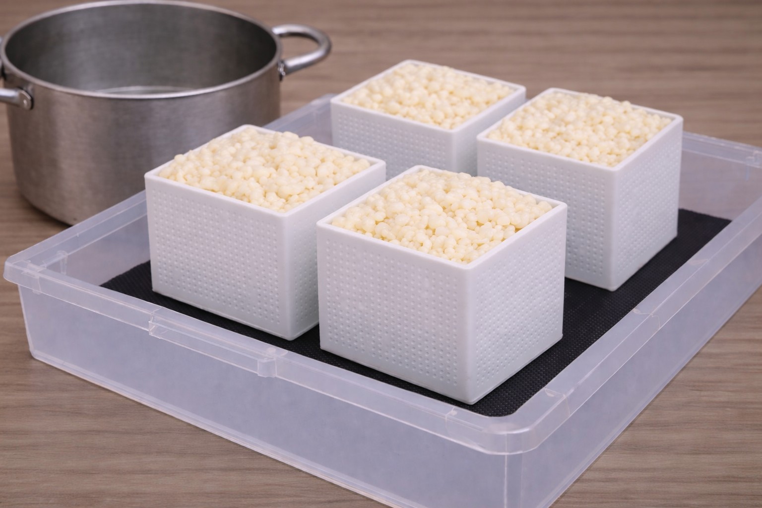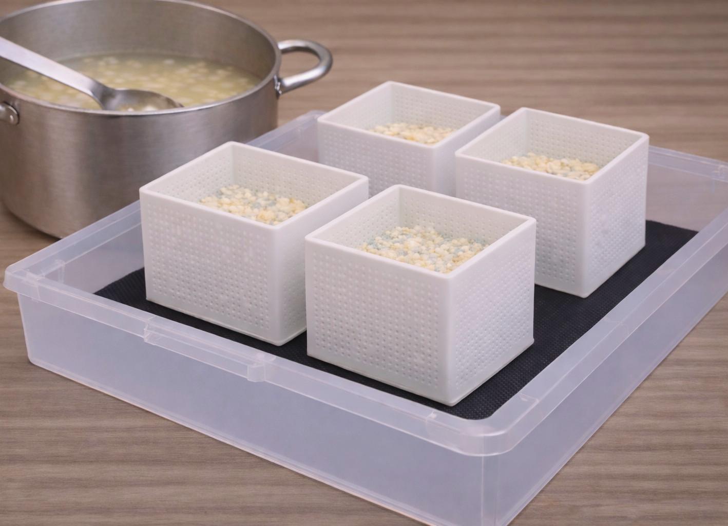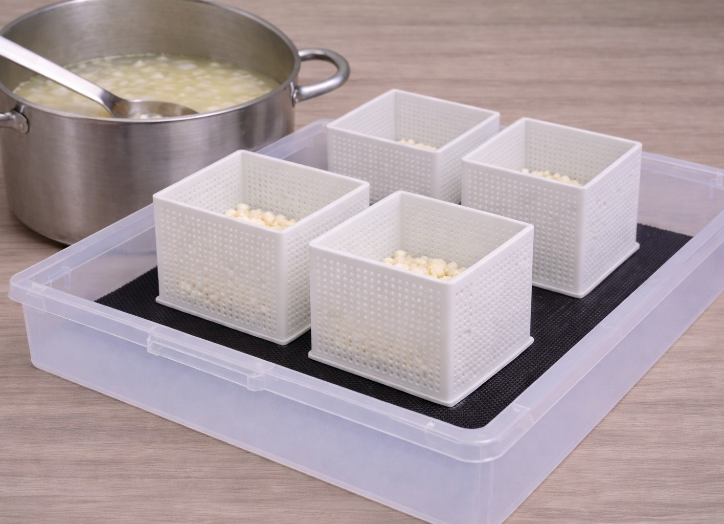 - Дайте раствору настояться в течение ночи. Утром распространите раствор по поверхности, дайте высохнуть и снова поместите сыр в контейнеры.