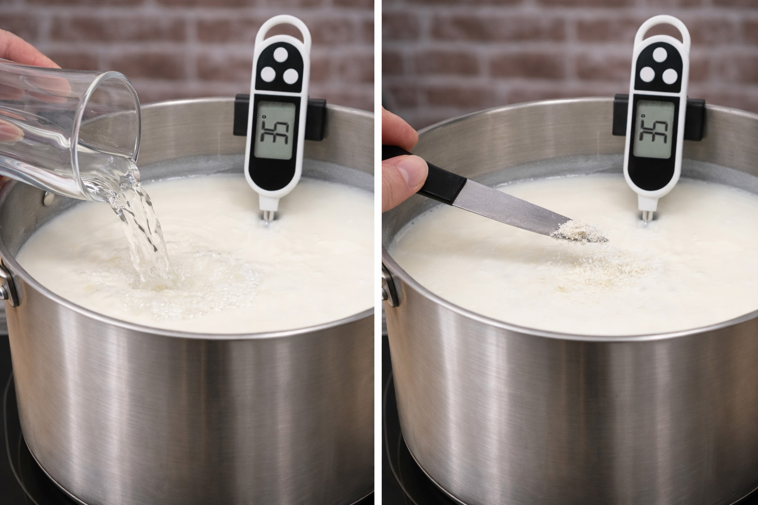 - ¼ ч.л. 10% раствора хлористого кальция (если пастеризуете молоко);